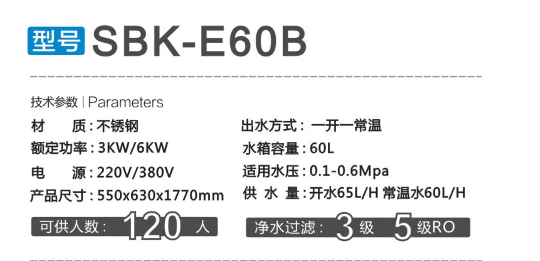水保康/SBK SBK-E60B 商用饮水机 6KW 一开一常温 黑色